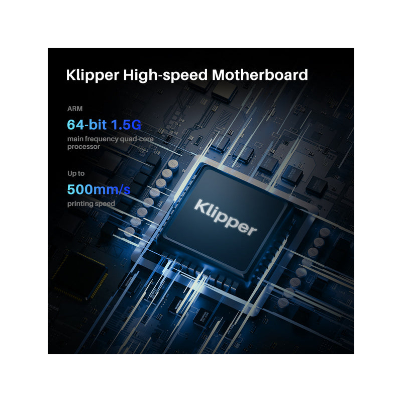 Con il firmware Klipper preinstallato, è possibile raggiungere velocità di stampa fino a 500 mm/s (250 mm/s di default), con un'accelerazione fino a 12.000 mm/s. La RAM da 8G le offre un'ampia capacità di archiviazione per una varietà di file di stampa.