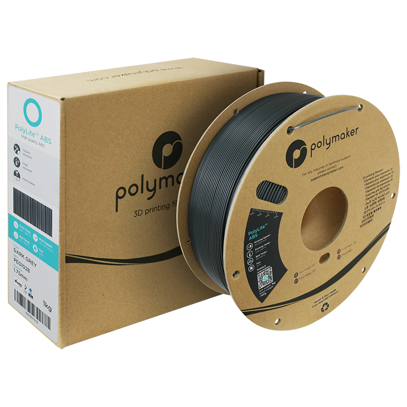 Il filamento ABS Dark Grey della serie PolyLite, sviluppato dal produttore Polymaker, è un filamento ABS di alta qualità con un contenuto minimo di particelle fini (COV) per ridurre i rischi di nocività.