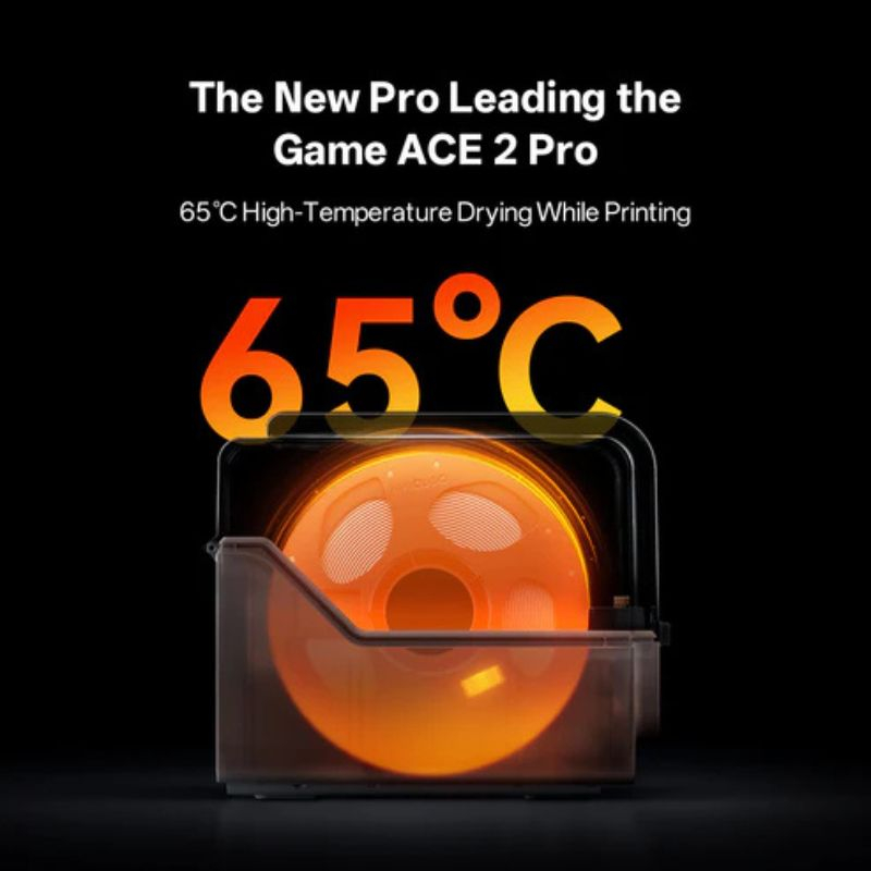 Grazie a sensori di temperatura e umidità abbinati a una valvola elettromagnetica, l’ACE 2 Pro rimuove attivamente l’umidità interna e garantisce un ambiente stabile per le bobine, essenziale per filamenti sensibili.