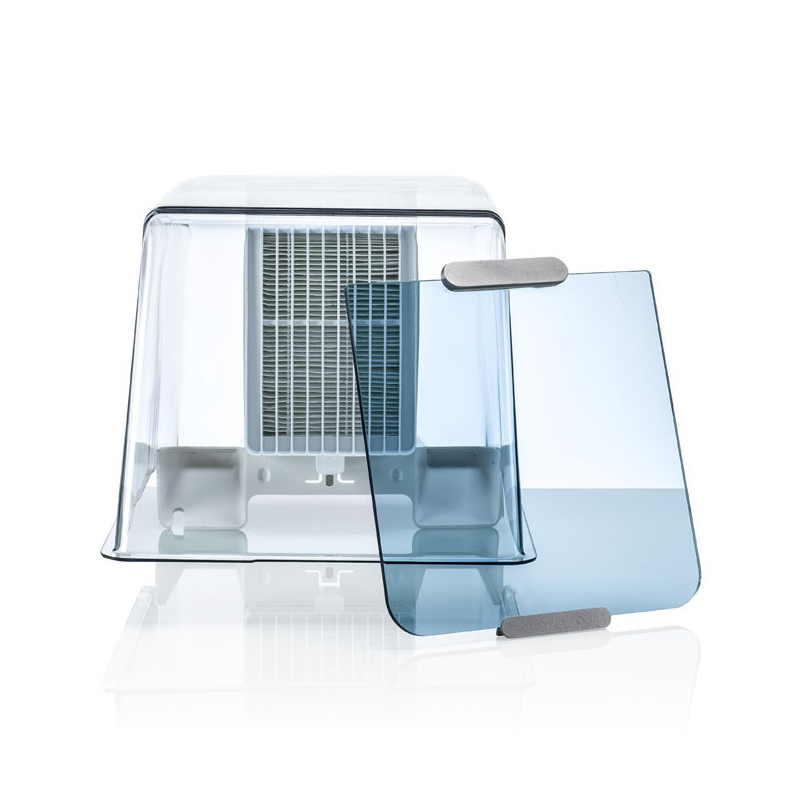 L'Air Manager opzionale per la Ultimaker 2+ Connect è progettato per aumentare in modo semplice ed efficace la sicurezza degli utenti. L'Air Manager è composto da un coperchio superiore, un filtro e una porta frontale. L'uso corretto dell'Air Manager minimizza i rischi di emissioni di particelle fini causate dai materiali di stampa 3D.