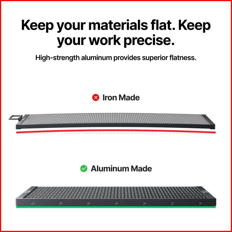 Realizzato in alluminio, il pannello è leggero, rigido e resistente alla corrosione. Resiste alle sollecitazioni termiche delle sessioni di taglio prolungate senza deformarsi e mantiene un’eccellente planarità nel tempo. La perfetta compatibilità con xTool P3 garantisce un’installazione rapida e senza regolazioni.