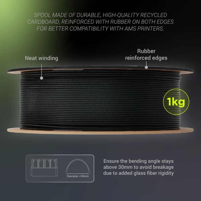 Le fibre di vetro aumentano la rigidità del filamento e limitano la deformazione dei pezzi. Ciò permette di stampare componenti stabili e duraturi, anche per applicazioni tecniche o industriali.