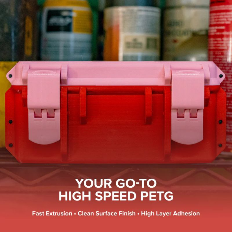 Alta velocità senza perdita di qualità: Grazie alla nuova formulazione, il Polymaker PETG Rosso permette velocità fino a 300 mm/s e fino a 500 mm/s con hotend ad alto flusso, mantenendo un’estrusione stabile e risultati puliti.