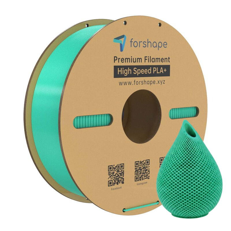 Il filamento High-Speed PLA+ Forshape Verde (PLA ad alta velocità) permette stampe a velocità fino a 600 mm/s grazie alla sua formulazione unica che combina alta fluidità e raffreddamento rapido.