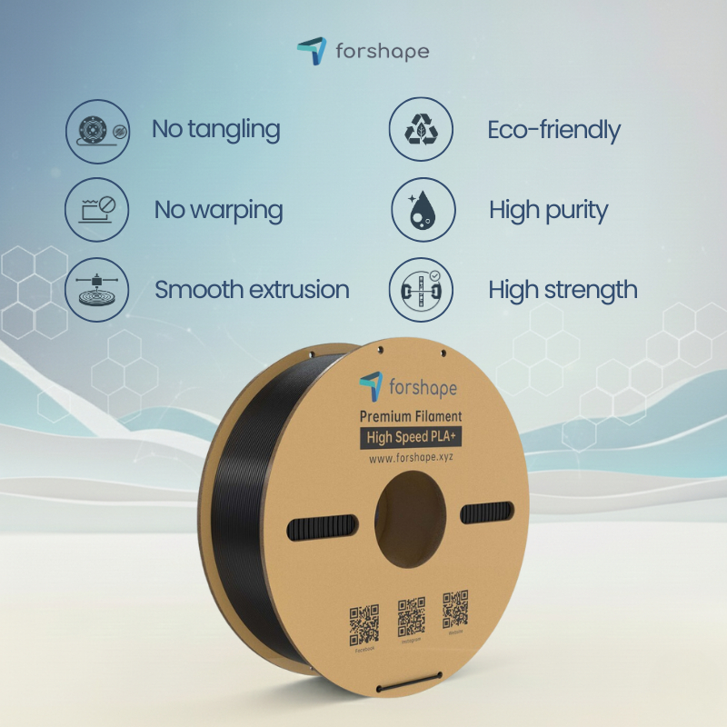 Oltre alla sua eccezionale velocità, il High-Speed PLA+ Forshape si distingue per la precisione dimensionale e la stabilità termica. Anche durante la stampa rapida, il filamento riduce al minimo le variazioni dovute a espansione e contrazione, garantendo modelli con bordi netti e dettagli fedeli. Questa combinazione di fluidità e stabilità permette di ottenere pezzi estetici e funzionali, adatti a una vasta gamma di progetti 3D.