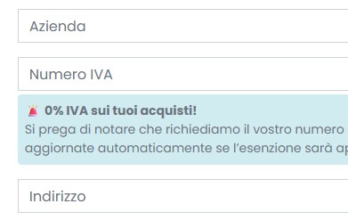 Una volta che hai inserito il tuo numero di partita IVA e il nostro strumento (o team) lo ha convalidato, potrai effettuare automaticamente acquisti senza IVA.