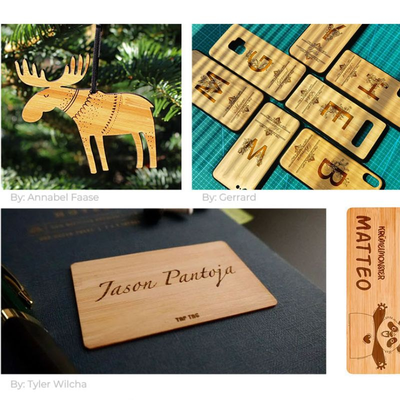 Il bambù offre anche un buon compromesso tra leggerezza e resistenza. È sufficientemente denso per la stabilità meccanica, ma facile da tagliare con macchine laser a potenza moderata. Materiale versatile, adatto a oggetti decorativi, parti funzionali o prototipi.