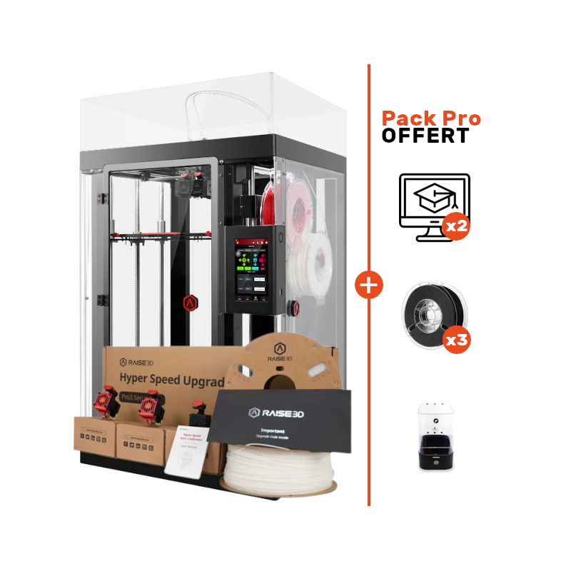 La Raise3D Pro3 Plus est une imprimante destinée aux professionnels et à l'industrie et propose de série d'imprimer des pièces techniques fonctionnelles comme de l'outillage spécifique ou des pièces de remplacement. Son grand volume utile d'impression vous permettra de sortir des pièces finies de grandes tailles ou de réaliser des petites séries de pièces.