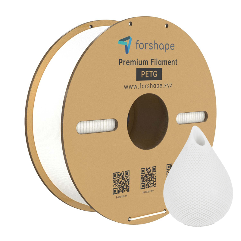 PETG Bianco 1.75mm è un filamento solido, idrofobo, traslucido e privo di odori. Il PETG Bianco è un filamento PET premium che offre elevata resistenza agli urti e buona stabilità dimensionale. Questo filamento PETG Bianco 1.75mm di Forshape combina i vantaggi di PLA e ABS.