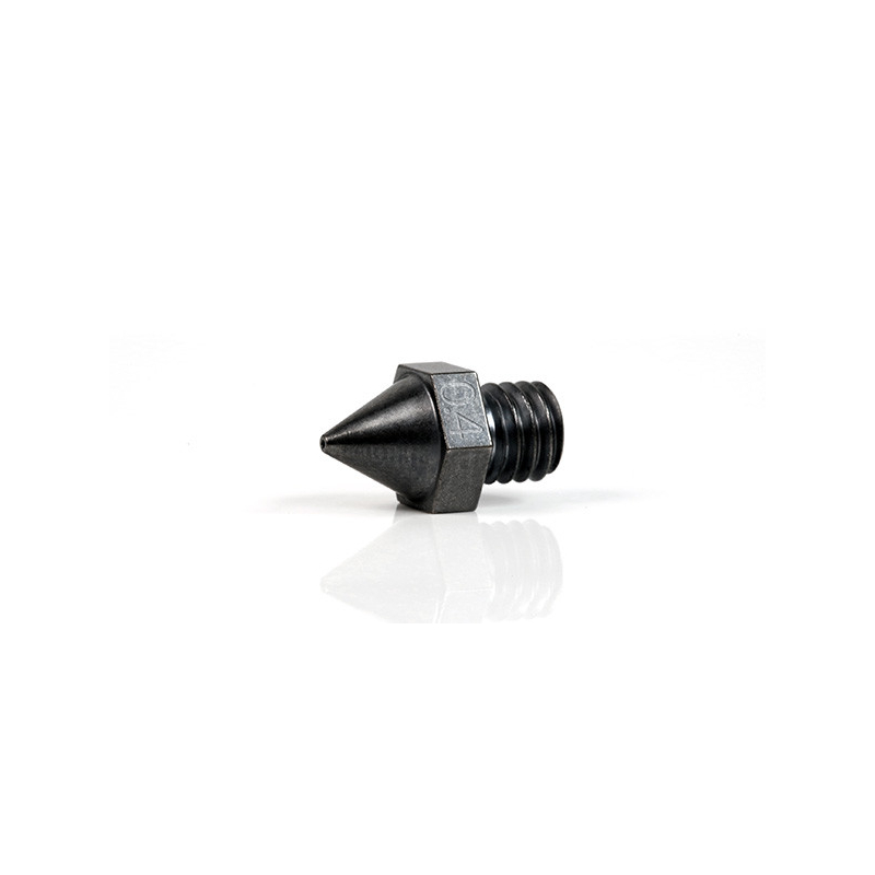 Acciaio con rivestimento specifico WS2 per resistenza all'usura e all'abrasione. Adatto a materiali compositi e abrasivi. Si consiglia un leggero aumento della temperatura rispetto agli ugelli in ottone.