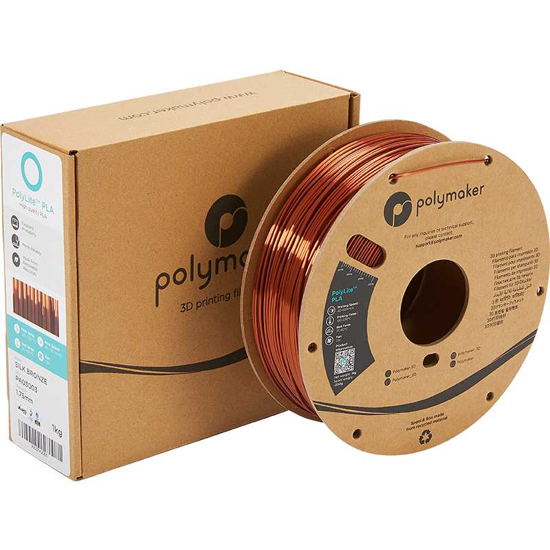 PolyLite Silk PLA Bronzo è un filamento PLA lucido con effetto satinato e setoso. Il suo aspetto originale e la facilità di stampa lo rendono ideale per miniature e oggetti decorativi.