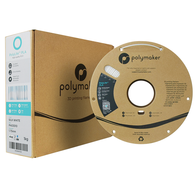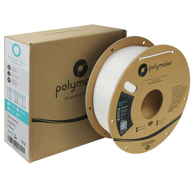 PolyLite Silk PLA Bianco è un filamento PLA lucido con effetto satinato e setoso. Il suo aspetto originale e la facilità di stampa lo rendono ideale per miniature e oggetti decorativi.