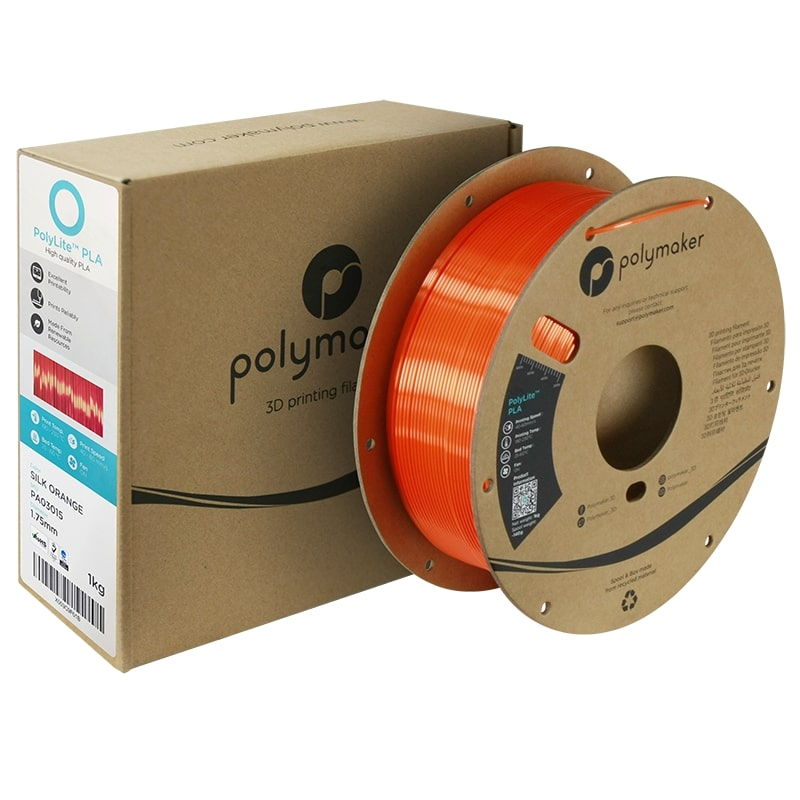 PolyLite Silk PLA Arancione è un filamento PLA lucido con effetto satinato e setoso. Il suo aspetto originale e la facilità di stampa lo rendono ideale per miniature e oggetti decorativi.