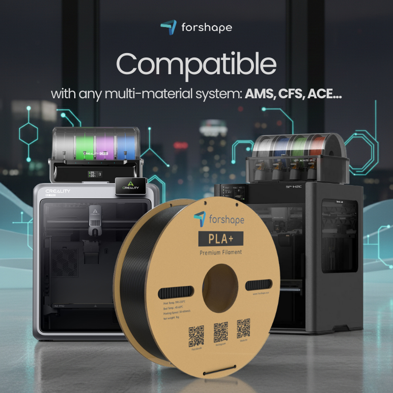 Compatibilità con sistemi multicolore: il PLA+ Forshape Azzurro è compatibile con sistemi multi-bobina come AMS, CFS e ACE.