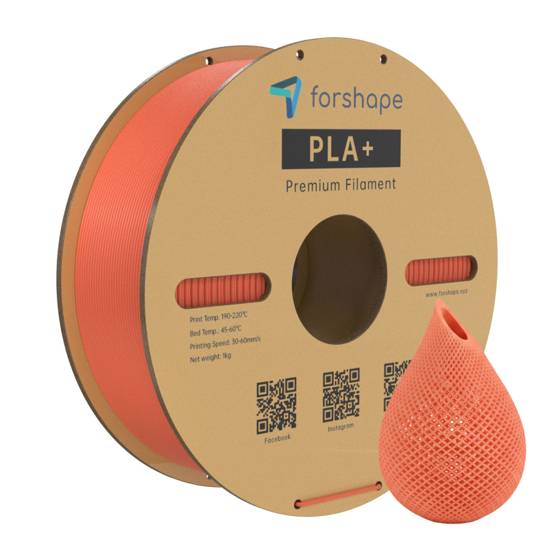 Il filamento Forshape PLA+ Arancione permette di stampare una vasta gamma di oggetti. Il PLA è il materiale più usato nella stampa 3D e il suo aspetto lucido offre una finitura gradevole.