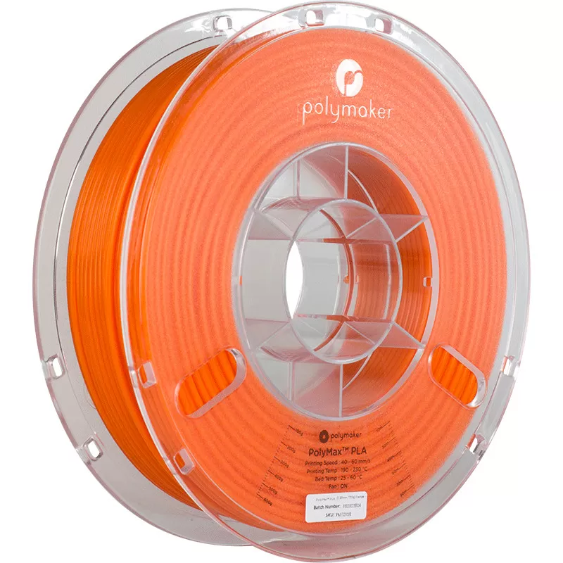 PolyMax PLA Orange è compatibile con tutte le macchine 3D aperte presenti sul mercato, sia 1.75 che 2.85mm.