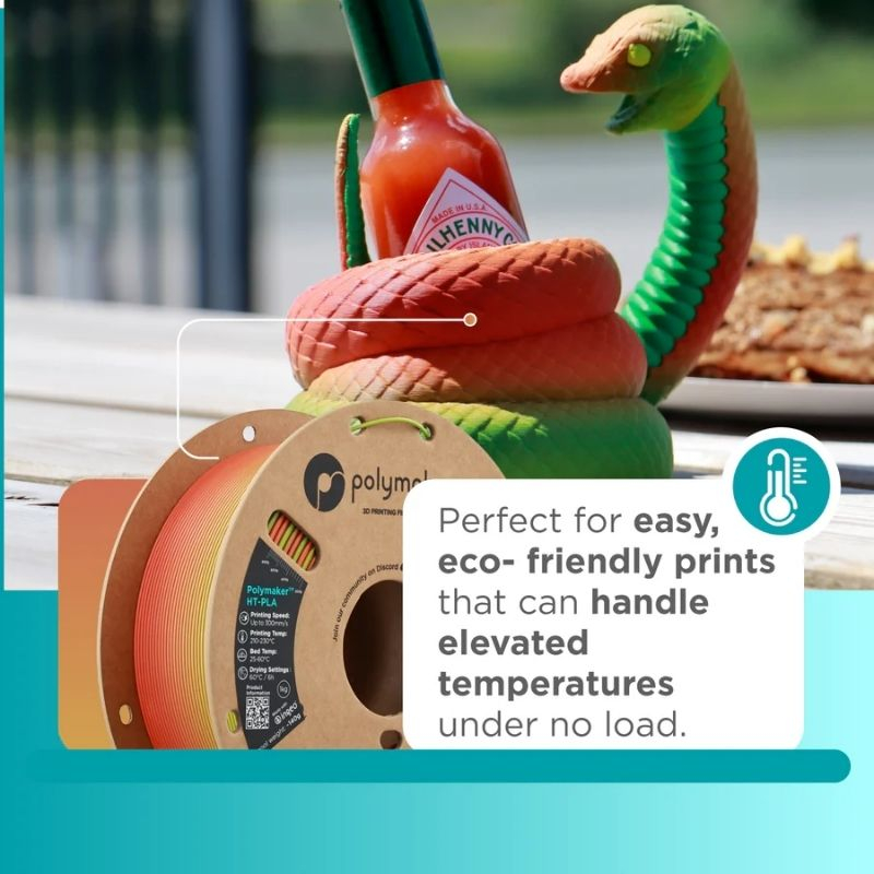 Polymaker HT-PLA Gradient Tropical è un filamento 3D che unisce la facilità di stampa del PLA con una resistenza al calore molto superiore.
