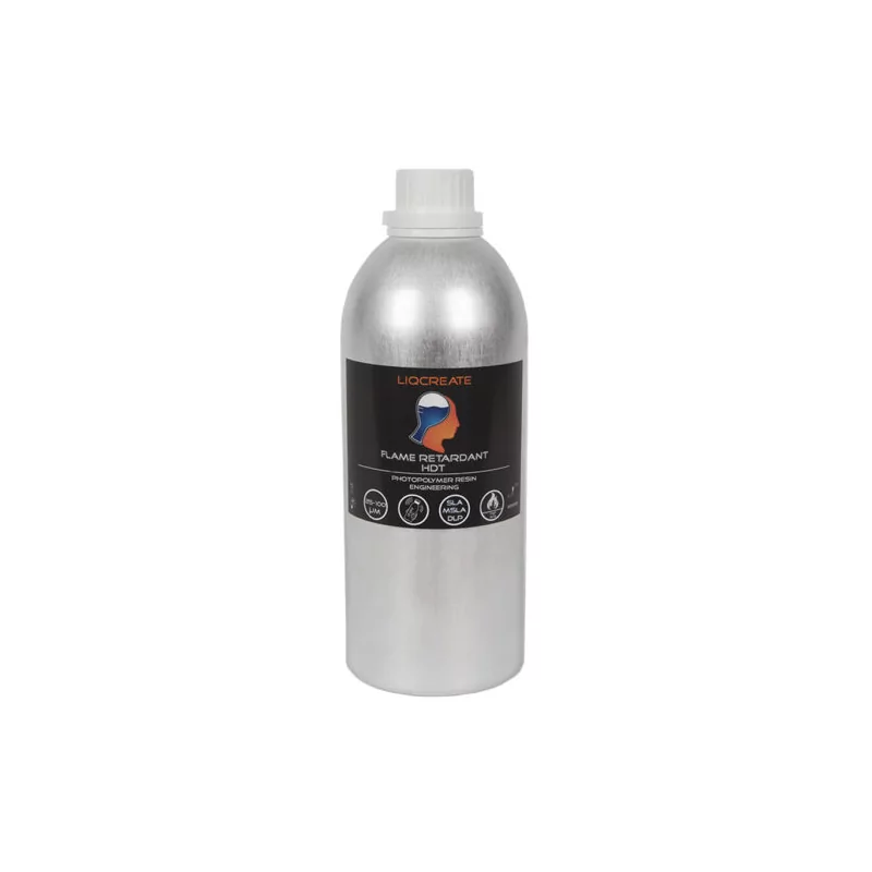 Liqcreate resine Il ritardante di fiamma HDT è un fotopolimero rigido bianco sporco per stampanti 3D con resistenza alle alte temperature (HDT-B fino a 257°C / 495°F) e può essere lavorato sulla maggior parte delle stampanti 3D aperte
