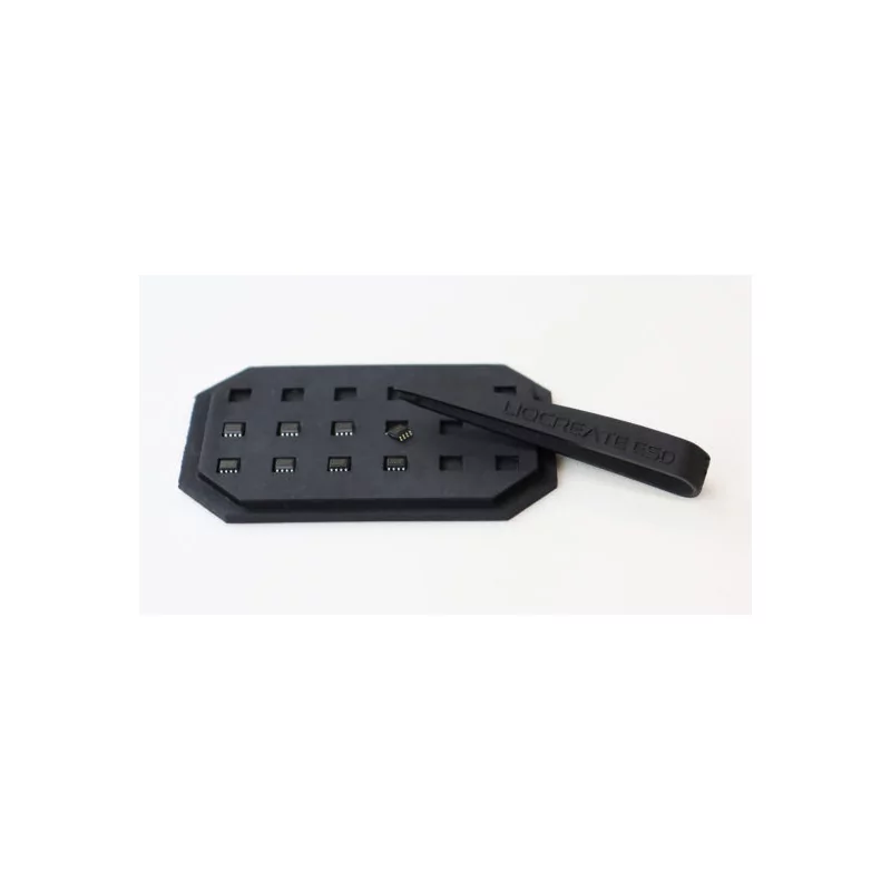 Liqcreate ESD resine resine è un fotopolimero nero opaco che può essere lavorato sulla maggior parte delle stampanti 3D. Le parti stampate in 3D con questo materiale hanno le proprietà di scarica elettrostatica richieste per la produzione di elettronica e di parti per i luoghi di lavoro protetti dalle scariche elettrostatiche (ESD).