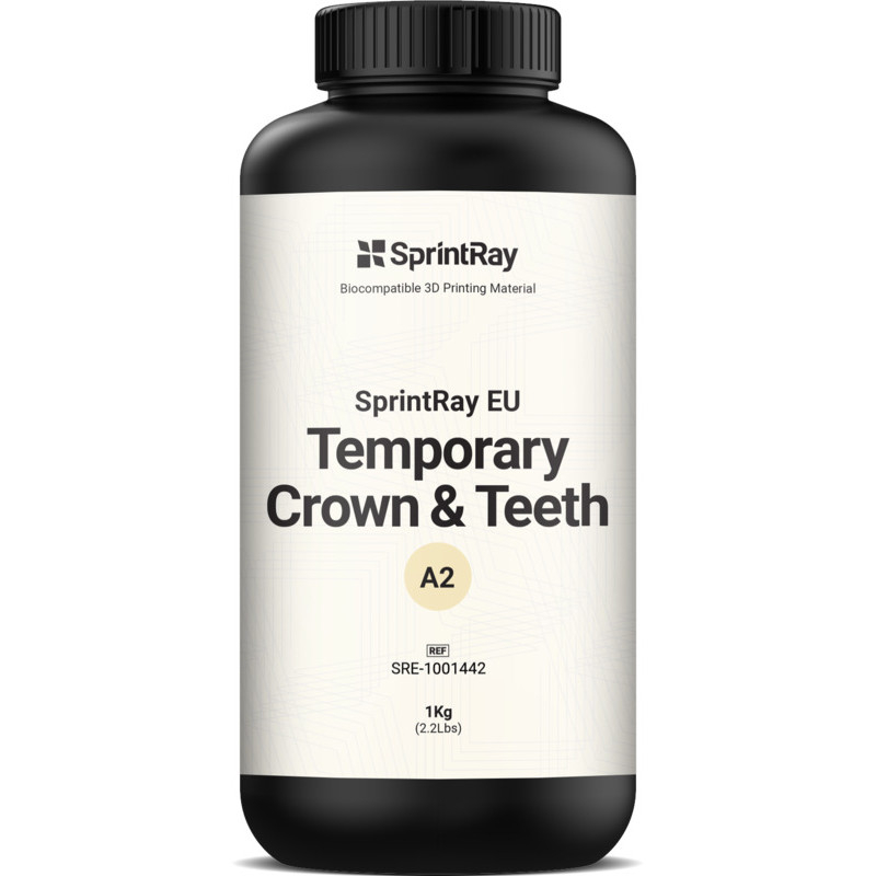 La resine EU Temporary Crown & Teeth A2 SprintRay è il materiale ideale per la produzione rapida di corone, ponti temporanei e denti protesici estetici e resistenti.