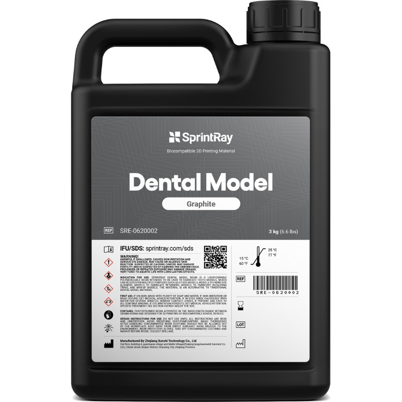 La resina SprintRay Dental Model Graphite - 3 L è formulata per offrire un’eccezionale precisione dimensionale e una superficie opaca e satinata che facilita la lettura dei dettagli. Ideale per la realizzazione di modelli dentali e allineatori, si distingue per la sua fedeltà di riproduzione e la perfetta compatibilità con le stampanti SprintRay.