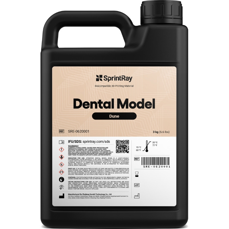 Progettata per laboratori odontotecnici, ortodontisti e cliniche ad alto volume, la resina SprintRay Dental Model Dune - 3 L è stata sviluppata per garantire la massima precisione e stabilità dimensionale. La sua formulazione di nuova generazione assicura una riproduzione fedele delle geometrie dentali, con superfici uniformi e contorni nitidi.