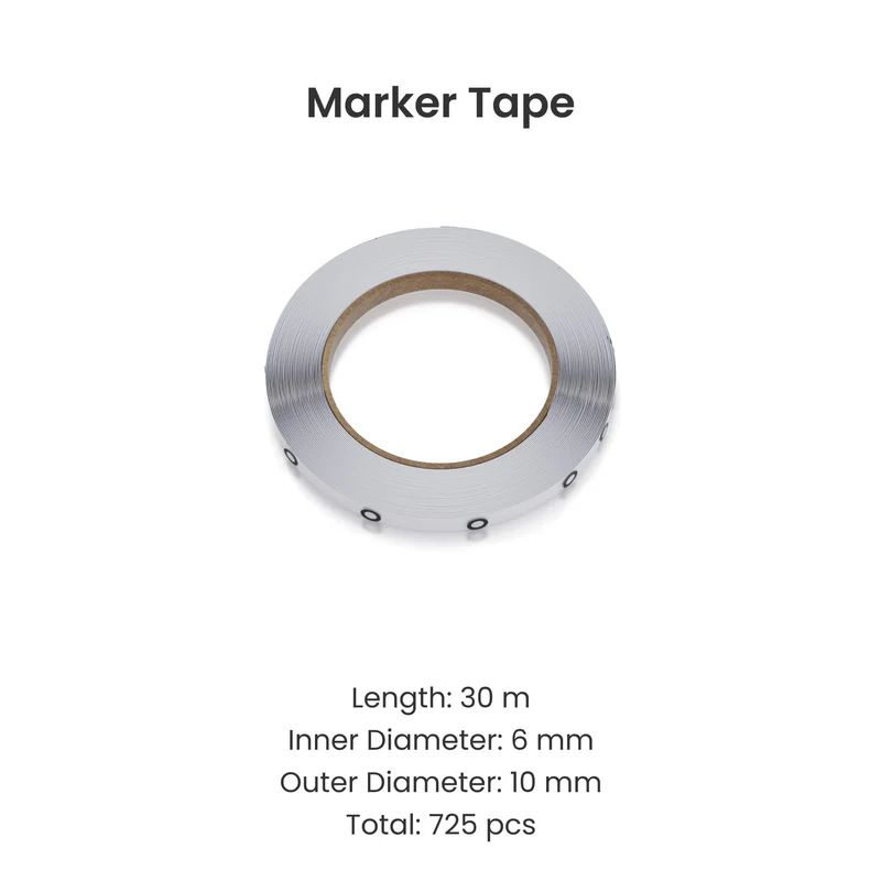 Consigli d’uso: applicare il nastro su superfici pulite e lisce, assicurandosi che i marcatori siano ben distanziati per una calibrazione ottimale. Evitare pieghe o bolle d’aria per mantenere l’efficacia del nastro durante la scansione.