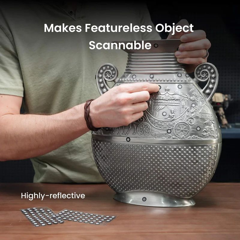 Perfetto per professionisti e appassionati di scansione 3D, prototipazione rapida o modellazione, questo kit di 500 marcatori offre una soluzione affidabile per ottenere scansioni precise e riproducibili ad ogni utilizzo.
