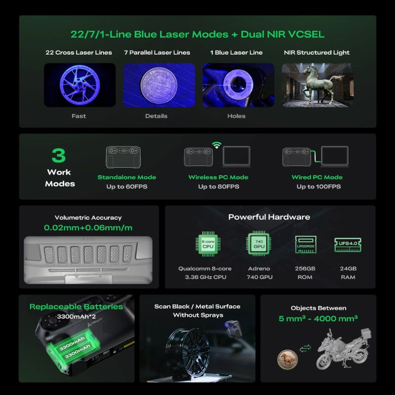 Il Sermoon P1 unisce precisione, velocità e versatilità in un formato professionale. Il suo ampio campo di scansione, la capacità multi-tecnologia e la scansione senza marker lo rendono uno strumento indispensabile per ingegneria, design industriale e archiviazione digitale.