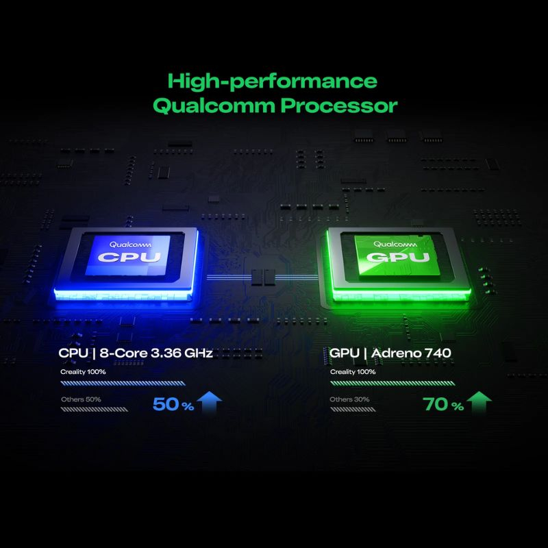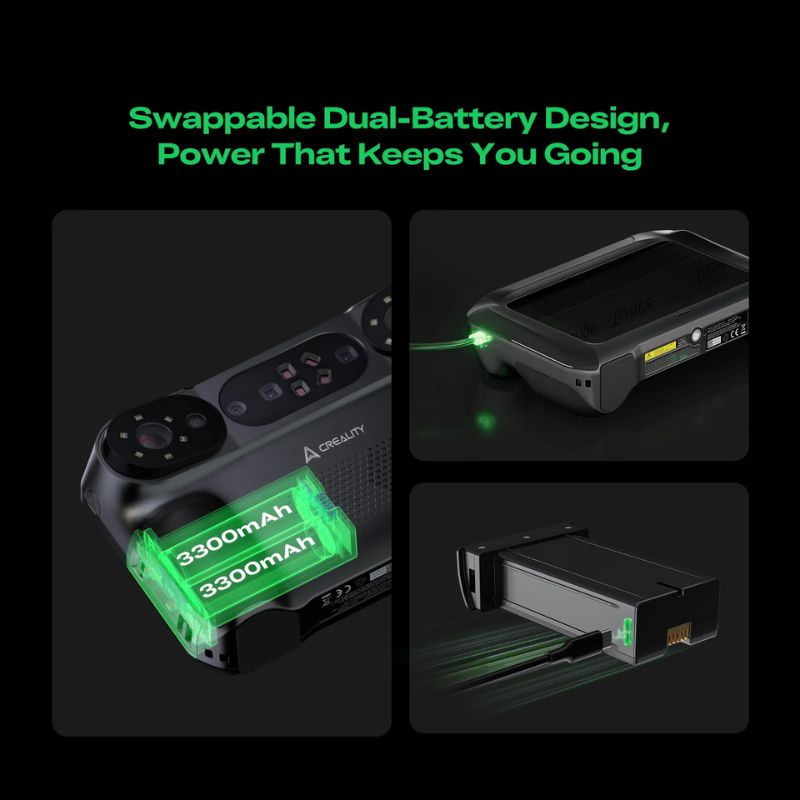 Dotato di due batterie rimovibili, il Creality Sermoon P1 consente un funzionamento continuo. La ricarica rapida raggiunge l’80% in soli 50 minuti, garantendo autonomia sufficiente sul campo.