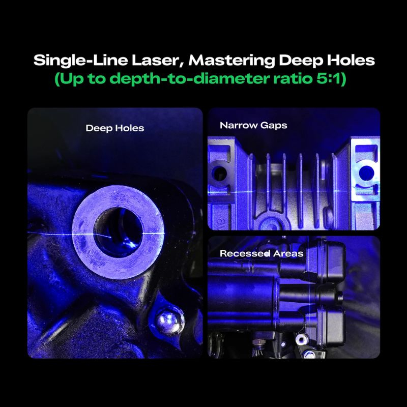Cattura dati precisi anche con un rapporto profondità/diametro fino a 5:1, garantendo una resa completa degli oggetti meccanici.