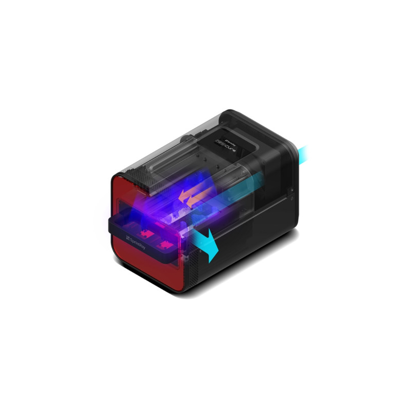 Il SprintRay NanoCure è un'unità di polimerizzazione UV compatta e potente, specificamente progettata per il post-trattamento delle parti stampate in resina. La sua luce uniforme garantisce una resistenza ottimale e una biocompatibilità conforme agli standard medici e dentali.