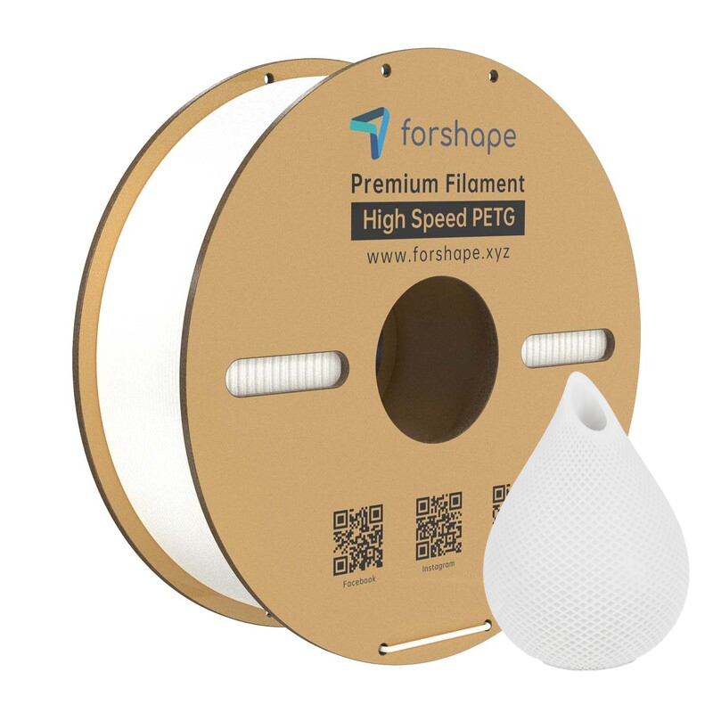 Il filamento High-Speed PETG Forshape Bianco è stato sviluppato per la stampa ad alta velocità fino a 600 mm/s, ovvero 10 volte più veloce del PETG standard, consentendo un notevole risparmio di tempo di stampa.