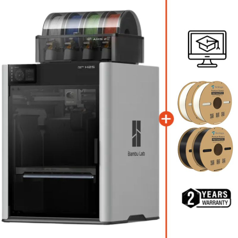 La Bambu Lab H2S AMS Combo rappresenta l'unione perfetta tra velocità, precisione e automazione. Progettata per utenti esigenti e professionisti della stampa 3D, offre un ampio volume di stampa (340 x 320 x 340 mm) e una struttura robusta che garantisce elevata stabilità.