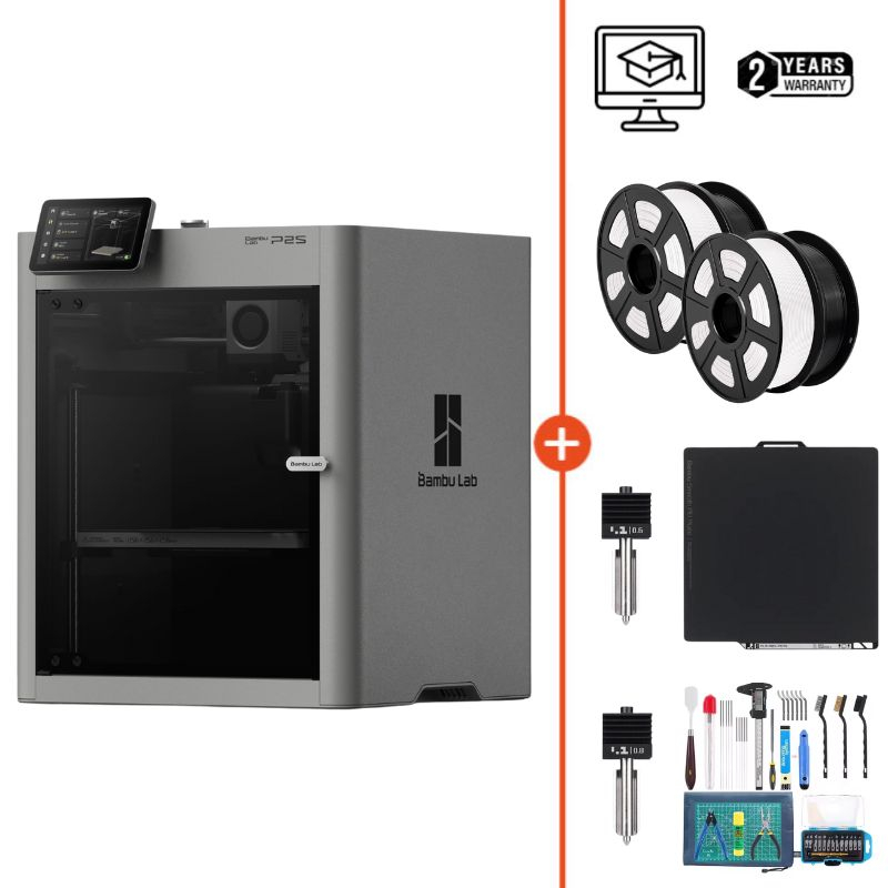 Puoi anche trovare la Bambu Lab P2S in un pacchetto con materiali di consumo (e talvolta accessori) che ti permetteranno di iniziare subito le tue prime stampe. I nostri consulenti sono naturalmente disponibili per aiutarti nella scelta dei prodotti complementari essenziali per l’utilizzo della macchina e adatti alle tue esigenze.