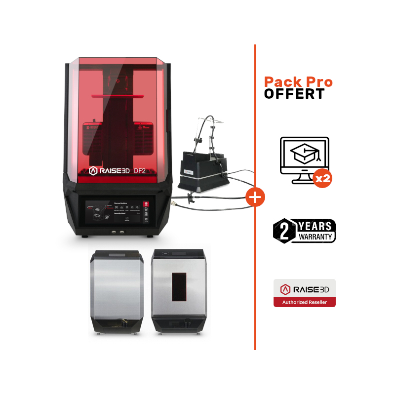 La Raise3D DF2 dispone di un ecosistema completo che integra software di slicing e gestione della stampante o di farm 3D con materiali industriali e macchine di post-processing personalizzate. Include anche un insieme di componenti ergonomici per una migliore esperienza utente.