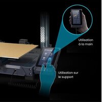 Lo schermo touchscreen capacitivo da 4,3 pollici può essere utilizzato a mano o fissato alla base. Offre la funzione di anteprima del modello e la possibilità di mettere in pausa la stampa, rendendo il processo più pratico e intuitivo. Inoltre, la stampante è dotata di una barra LED con 30 luci sulla struttura e di un LED aggiuntivo vicino all'ugello, che consentono di monitorare la stampa anche in ambienti bui.