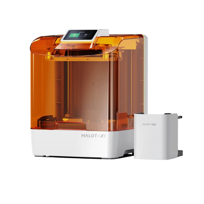 La versione Combo del Halot-X1 è dotata del sistema AFU, che integra diverse funzioni automatizzate. L’alimentazione della resina è gestita automaticamente, con rilevamento del livello tramite laser per evitare carenze, mentre un riscaldamento rapido porta la resina alla temperatura in pochi minuti. Un modulo di riciclo completa il sistema, riducendo gli sprechi e semplificando il flusso di lavoro quotidiano.