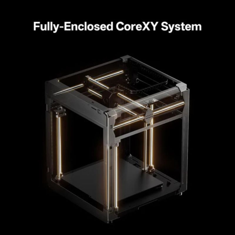 La struttura CoreXY consente velocità fino a 600 mm/s con accelerazione massima di 20.000 mm/s². Ideale per ridurre i tempi di produzione mantenendo alta qualità di stampa.
