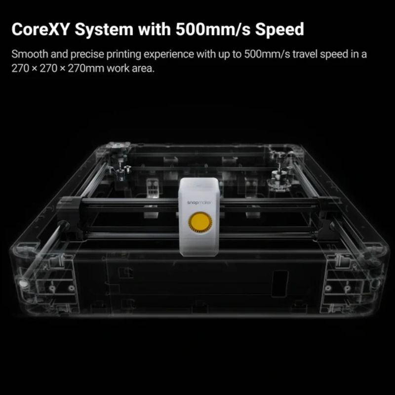 La meccanica CoreXY e i motori ad alte prestazioni permettono alla U1 di raggiungere velocità fino a 500 mm/s e accelerazioni di 20.000 mm/s². Questa combinazione di velocità e stabilità garantisce pezzi nitidi anche in stampe lunghe, mantenendo un’eccellente qualità superficiale.