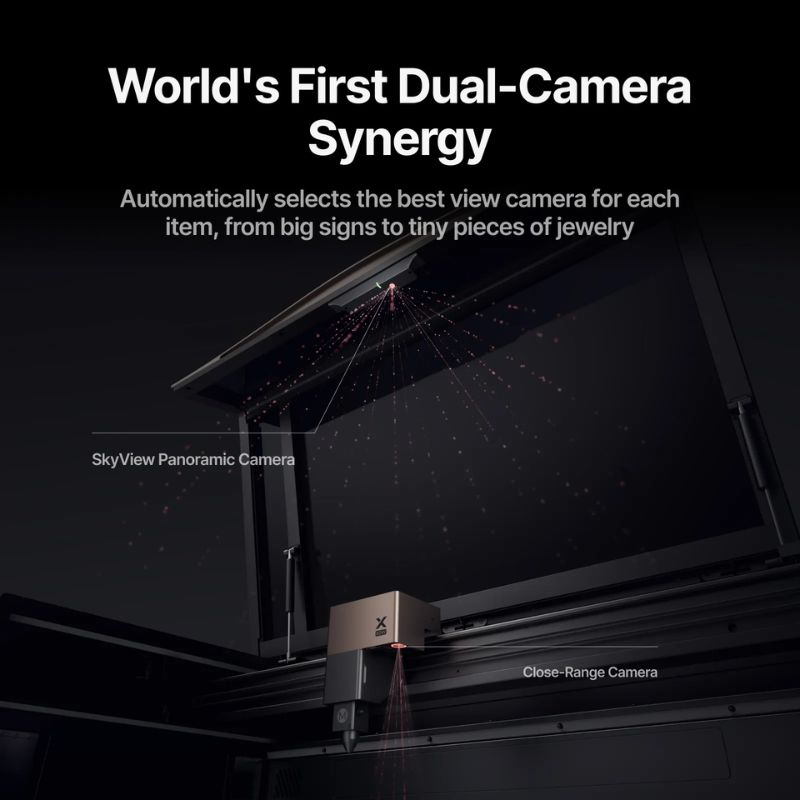 Guidata dalle misure LiDAR, posiziona il materiale con precisione per un focus costante, anche su oggetti voluminosi.