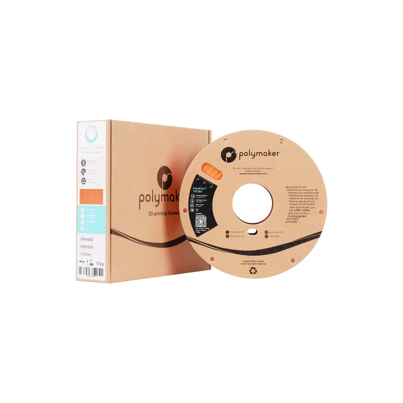Le Polyflex TPU95 Orange de Polymaker est un filament très flexible. Le Polyflex de Polymaker est doté d'une grande élasticité ainsi qu'une excellente résistance à la rupture pour des diverses applications.