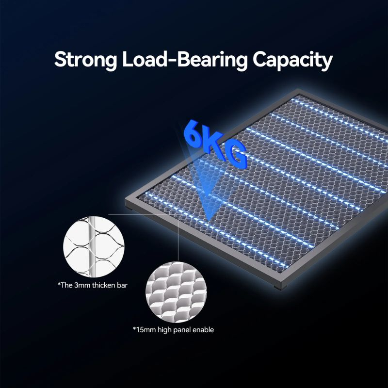 Il pannello a nido d’ape Creality è progettato appositamente per Falcon A1 e Falcon A1 Pro per fornire una superficie di lavoro stabile e durevole per i vostri progetti di incisione e taglio laser. La sua struttura metallica a nido d’ape favorisce la dissipazione del calore e riduce i riflessi, minimizzando bruciature e scolorimenti sui materiali.
