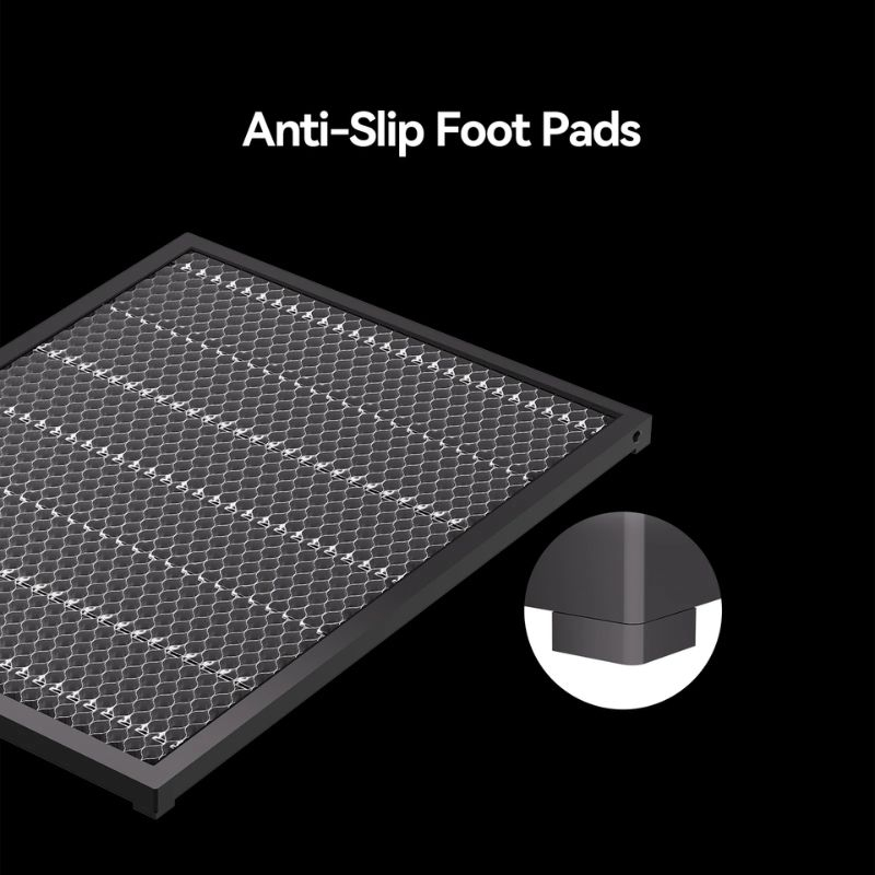 Il design aperto del pannello permette al fumo di fuoriuscire dai lati, garantendo tagli più puliti e riduzione del surriscaldamento dei materiali. Con una superficie di lavoro ampia di 460 × 346 mm, è possibile lavorare su pezzi grandi senza regolazioni aggiuntive. Fornito con 4 gommini antiscivolo.