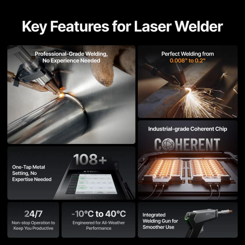 Il xTool MetalFab 800W è un’ottima soluzione per i professionisti che cercano un sistema di saldatura laser compatto combinato con taglio CNC senza compromessi sulla qualità. La sua potenza di 800W consente di realizzare saldature precise e pulite su una vasta gamma di metalli, integrando funzioni di taglio CNC e pulizia laser.