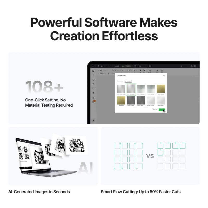 Con il suo software intelligente, il MetalFab xTool diventa una vera estensione della tua creatività. Ogni funzione è pensata per semplificare e automatizzare le fasi chiave del flusso di lavoro.