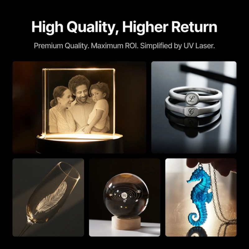 Sia per gioielleria, prototipazione o marcatura industriale, questo incisore laser UV offre una soluzione completa per laboratori professionali esigenti e produzioni di alta qualità.